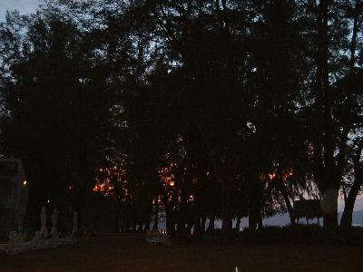 ローンパインのビーチから撮った夕日です。朝は小鳥のさえずり、夕方になる...