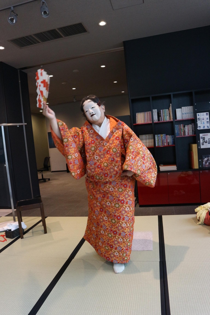 入館料は300円でした。入口の能面は入館する前に無料で見ることができます。2階はエレベーテーで行くことができます。能に使った衣装、着物が展示されていました。3階は能のDVDを見ることができます。また、能の物語の絵本もたくさんありました。私たちが行ったときは、能面を作るセミナーが行われていました。
