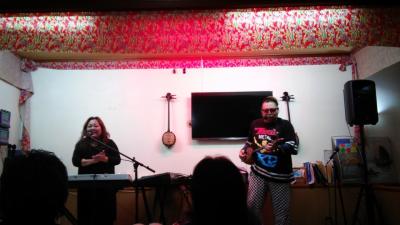 食事、飲み放題とライブチャージ込みで3000円。ライブの時間は決まっておらず、突然はじまります。お店のスタッフが被り物をお客に配り、お客さんも一緒に盛り上がる事ができるお店でした。