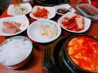 スンドゥブチゲを注文。小鉢はお代わり自由。