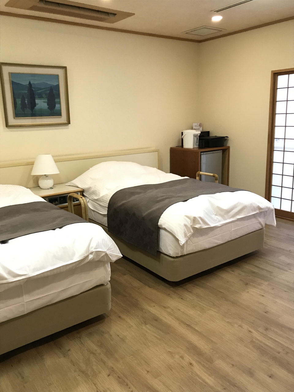 和室10畳のお部屋で予約しましたが 和室プラスツインベッドのバリアフリールームにアップグレードしていただけました。