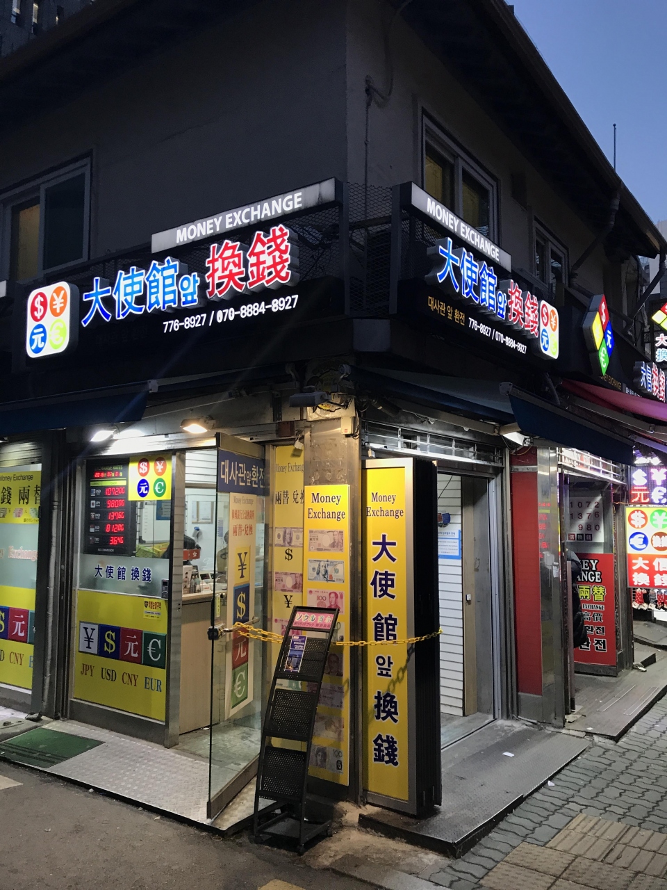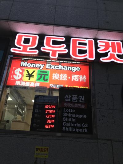 ソウル 明洞の公認両替所は大使館前の両替所レートがよいことで有名ですが 5~6メートル北に歩いたところにある 「モドウチケット」も大使館前と同じくらいレートが良いです。