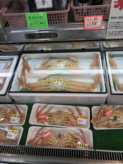 たくさんの蟹がいる水槽があり茹で蟹も並んでいました。