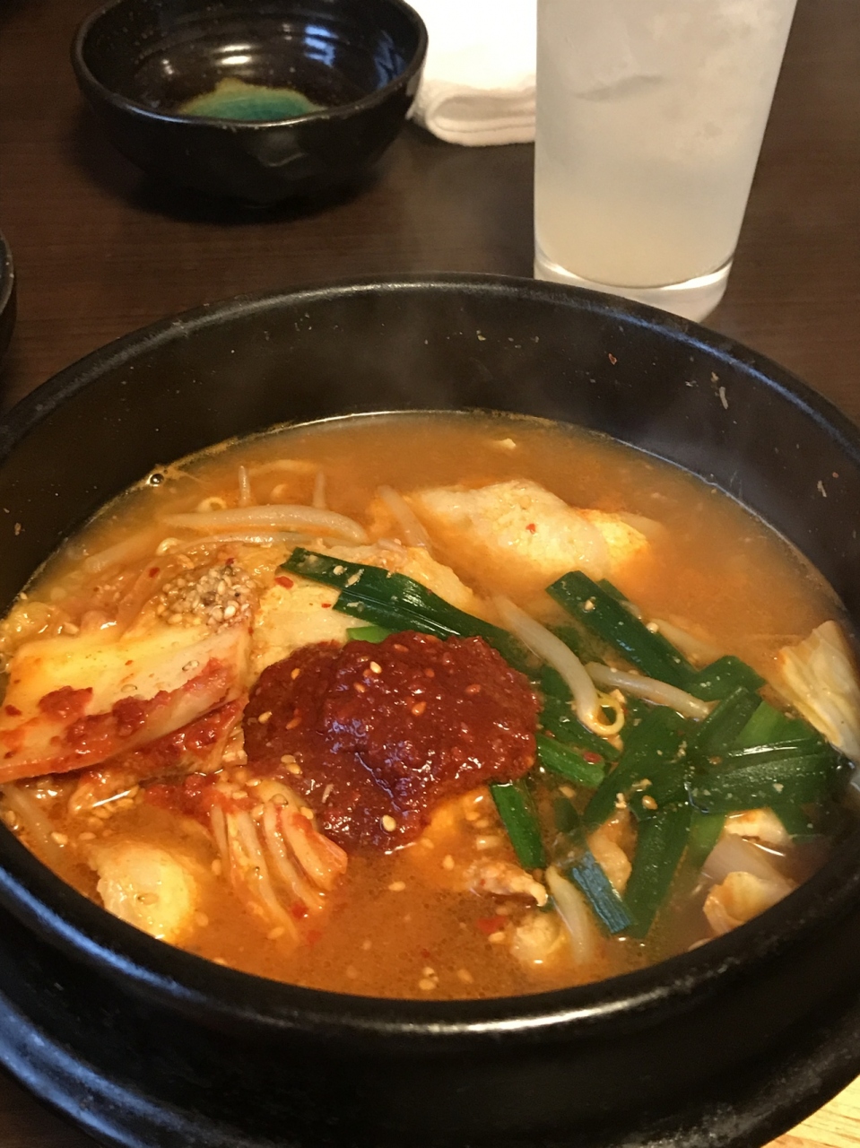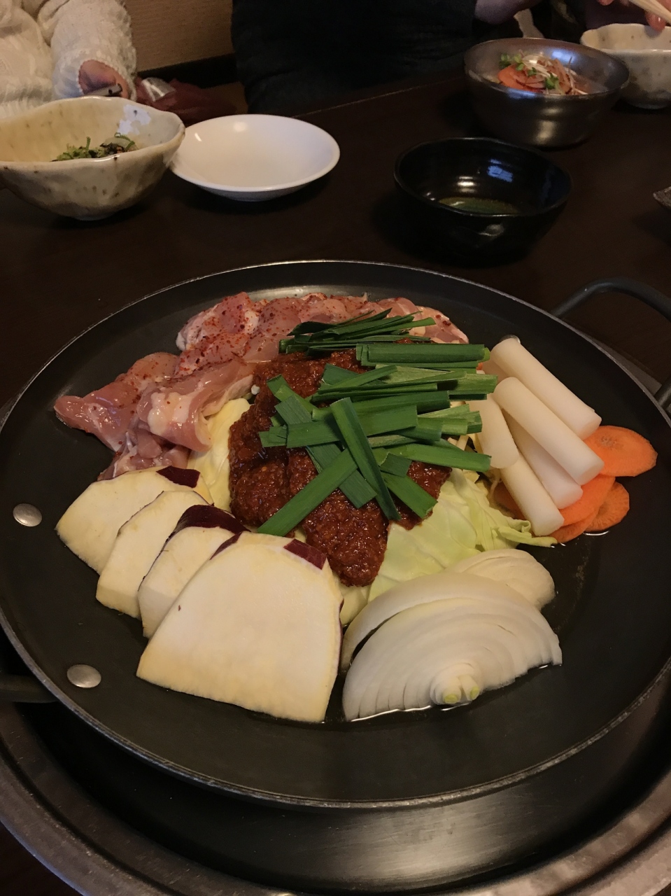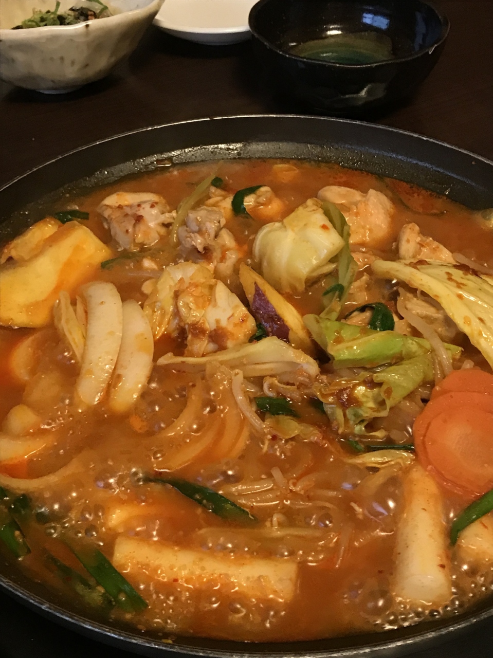 ランチメニューで テンジャンチゲと ダッカルビを注文しました。