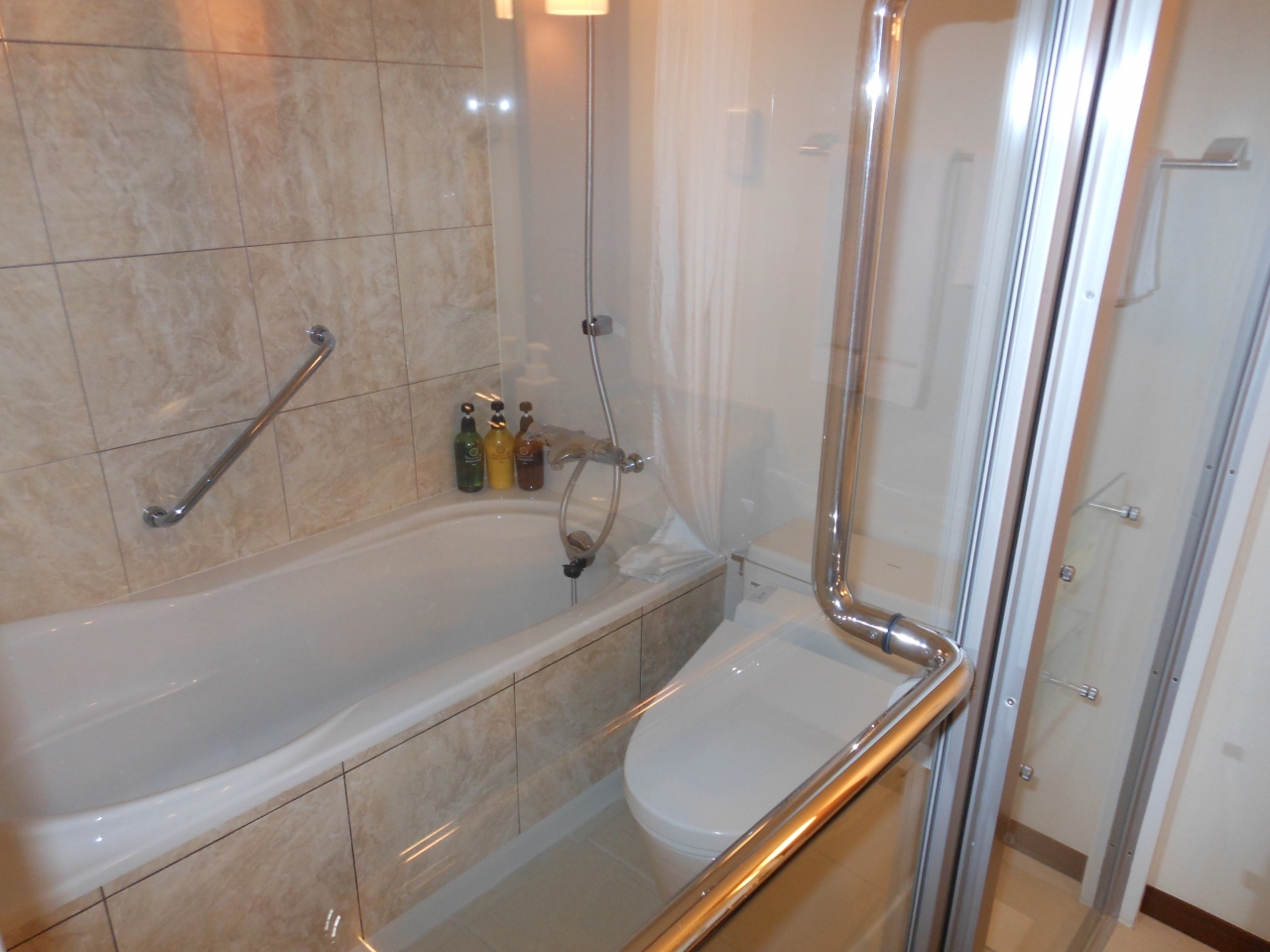 お風呂エリアはメインの浴槽ひとつと サウナが二つ あと眺めのよい浴槽もあります。