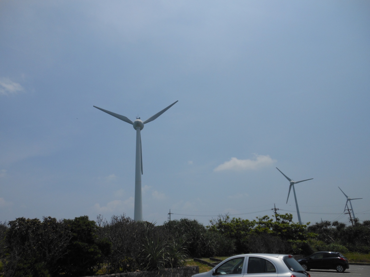 自然に風を利用した風力発電の風車があり展望台からはエメラルドグリーンの海に架かる池間大橋が見え、北側には池間島、西側には伊良部島、東には大神島の3つもの離島を一望できる。