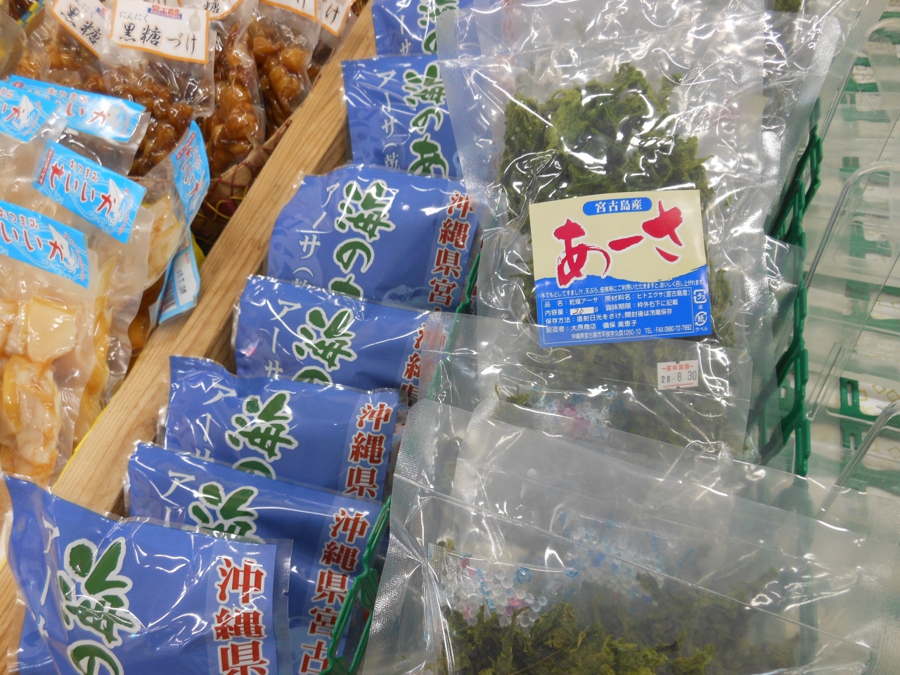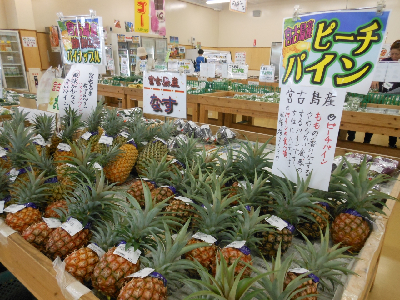 宮古島の野菜やアーサー 果物がお得な価格で販売されていて サンピン茶やシークワーサーのペットボトルも買いました。