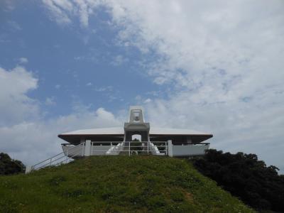 伊良部島に渡ってくるサシバをかたどった真っ白な展望台。