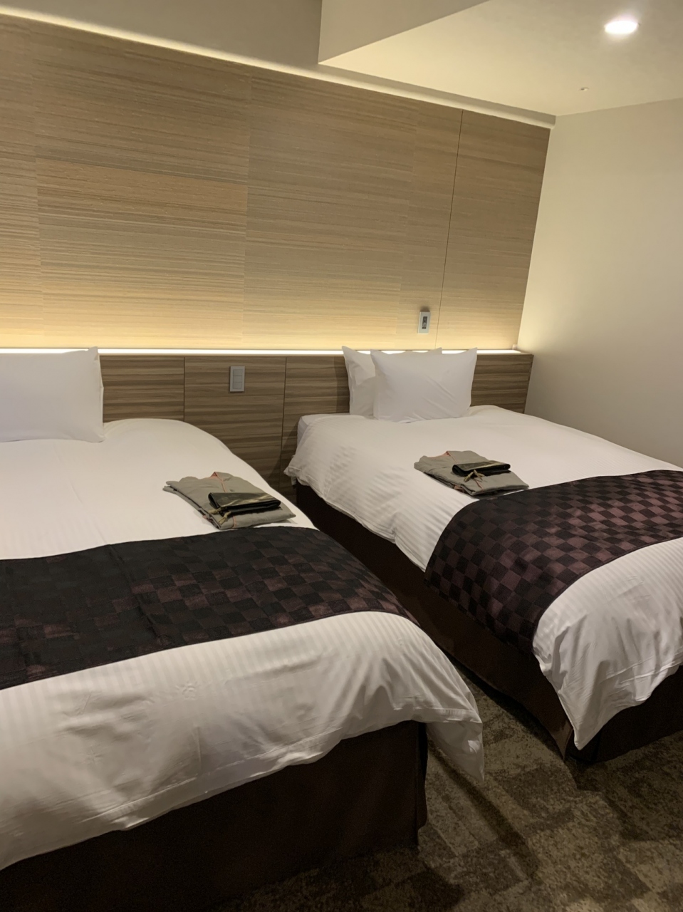 3か月前に予約していました。デラックスツインのお部屋で36平米、リビングルームと2ベッドでテレビ2台、使い勝手良かったです。大浴場があり内湯のみですが結構広かったです。アメニティも充実していて朝食はクロワッサンが特に美味しかったです。八条口アスティにも近く買い物にも困りません。