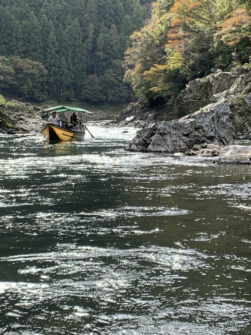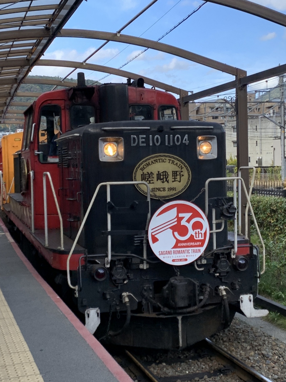 トロッコ嵯峨駅からトロッコ亀岡駅までトロッコ列車に乗りました。列車は4席1マスになっています。窓が開け放っていて風を感じることが出来ます。トンネルに入ると冷たい空気が入ってきます。車窓は保津川が見えたりして紅葉も楽しめました。約25分ほどの乗車でした。
