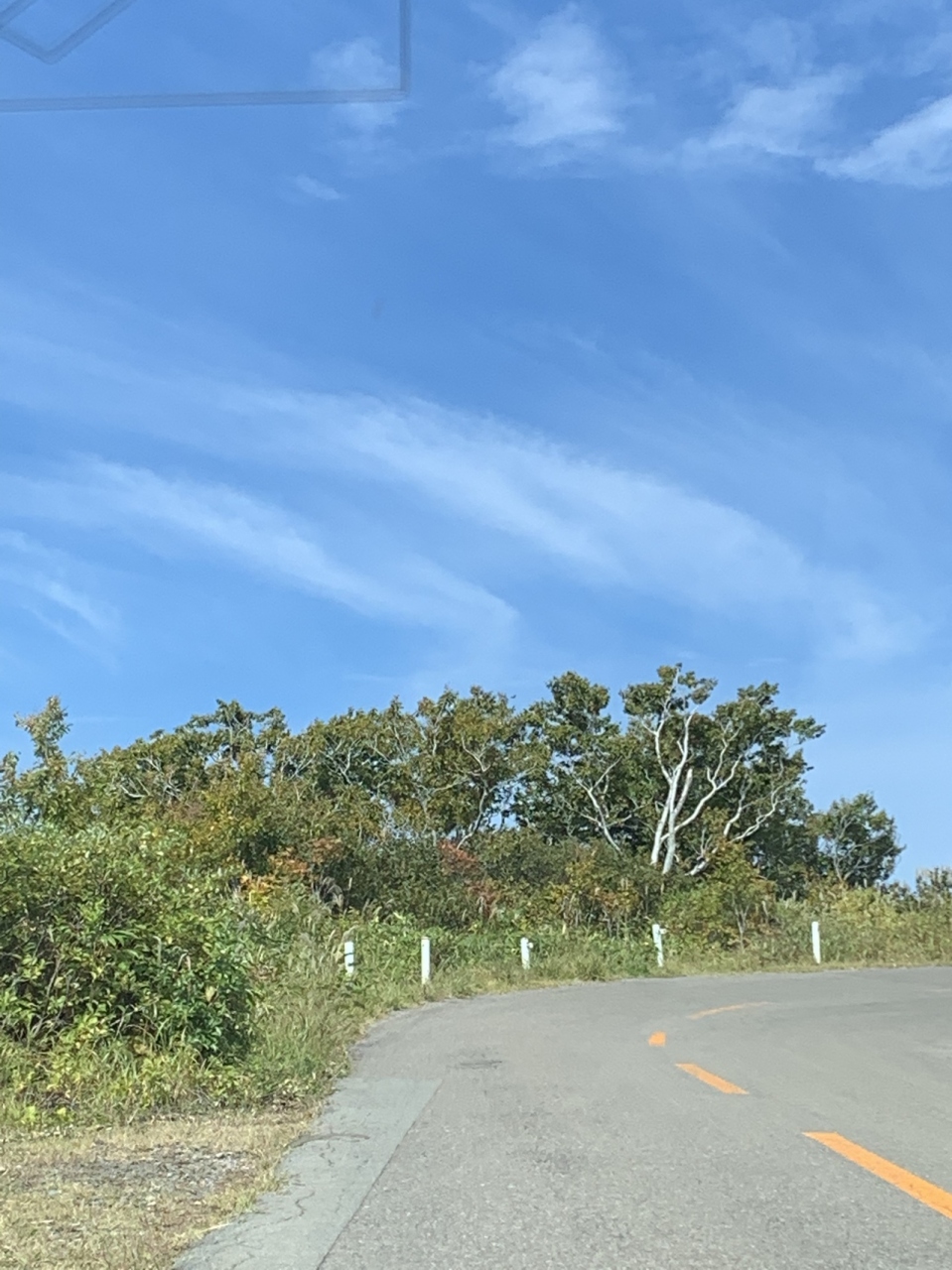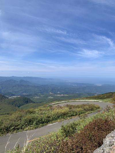 自動車専用道路で69のカーブがあり、カーブに続くカーブで車が揺れに揺れました。県道弘前~鯵ヶ沢線の嶽温泉を過ぎたあたりから岩木山8合目まで、つづら折りのカーブを上がるにつれてだんだん木々が紅葉してきてとても綺麗でした。大自然の中を走りぬけるのは気持ち良かったです。