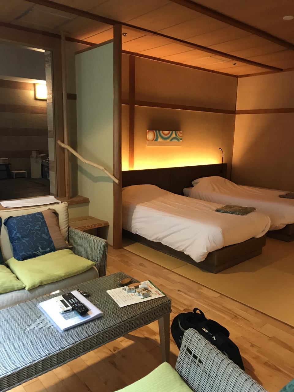 大人4人でもツインベッドと和室 リビングがあるのでひろびろしていました。