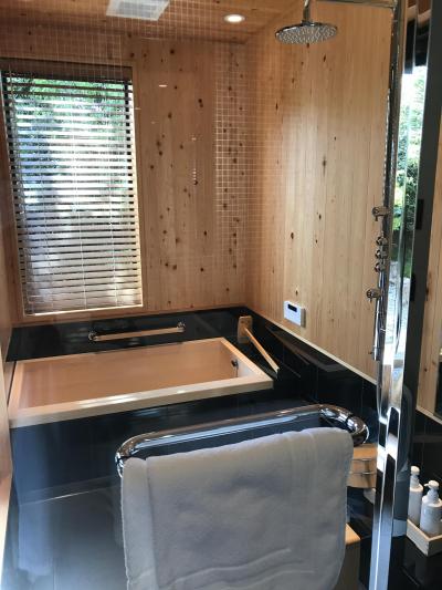 お部屋の榊原温泉から引いた露天風呂とヒノキの内風呂も良かったです。