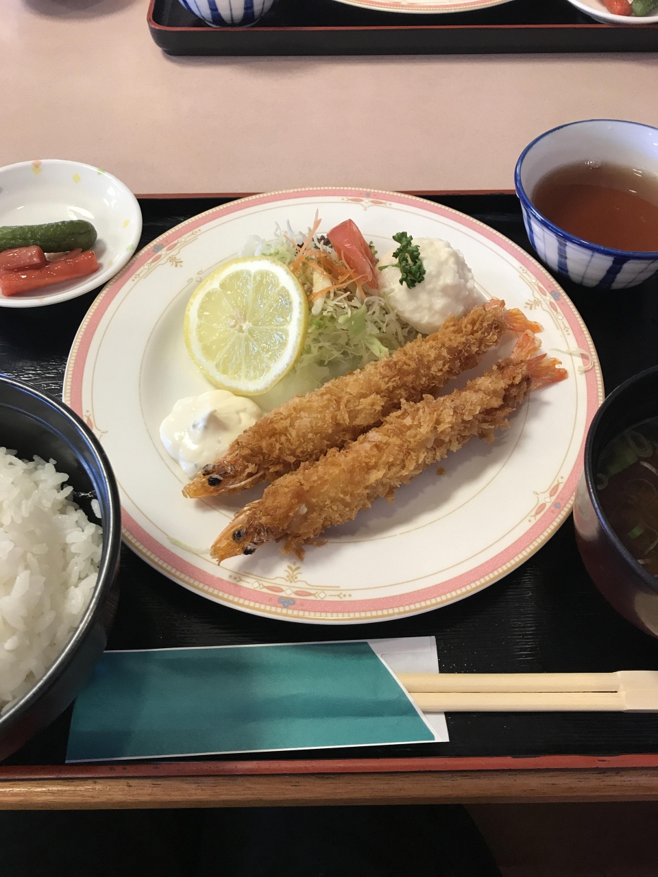 お得な定食がたくさんあるレストランがありエビフライをいただきました。