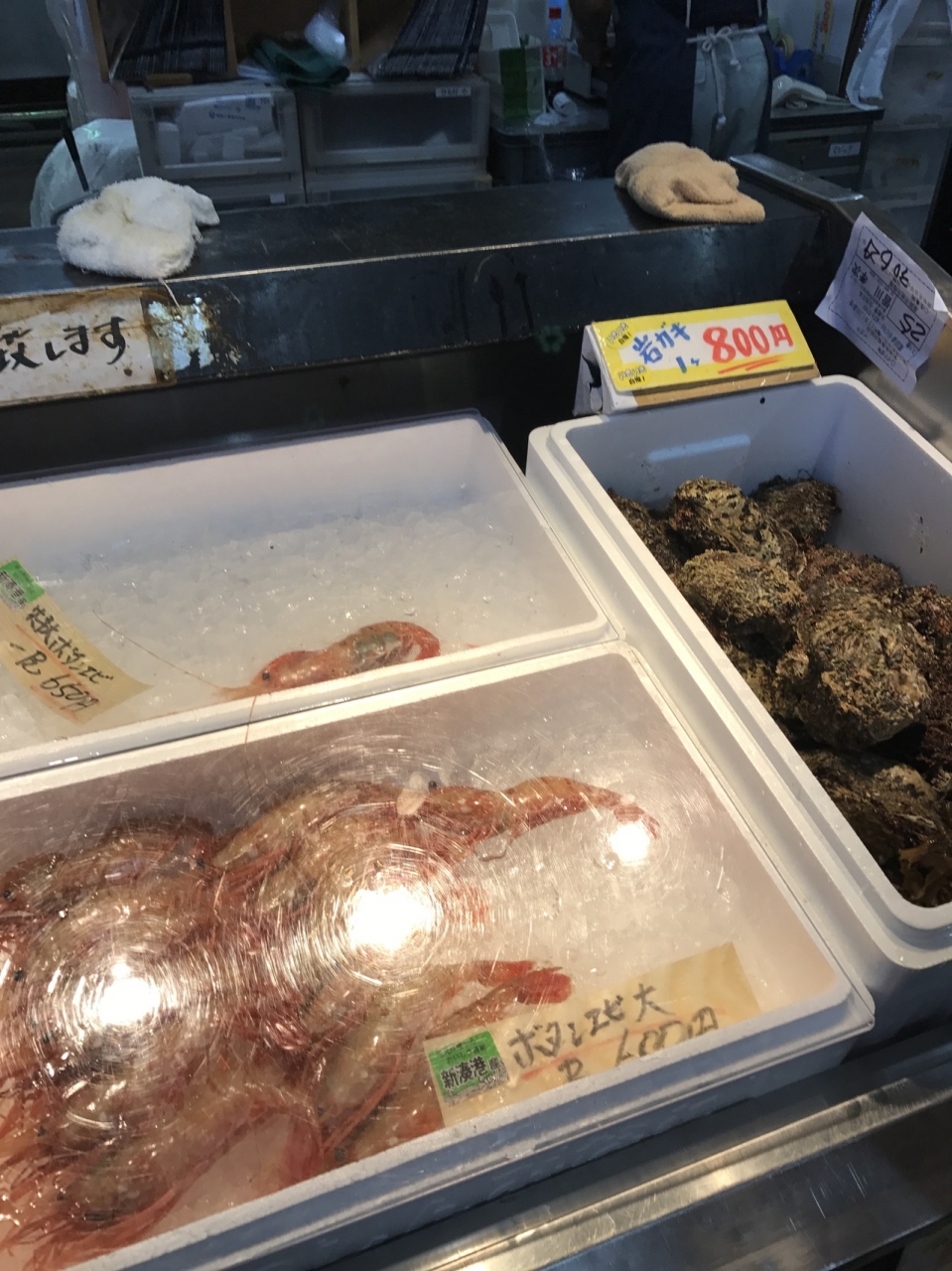 新鮮な岩ガキや魚がその場で調理してくれて食べることができます。