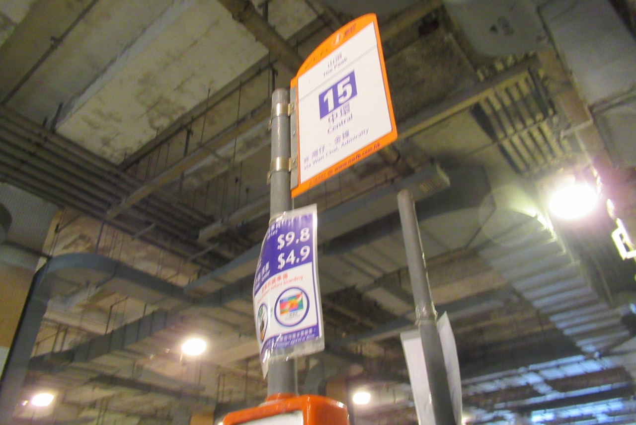 中環のスターフェリーの乗り場を下りてすぐ右に歩くと 15番バス乗り場があります。