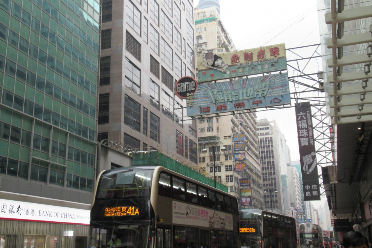 2階建てバスも連なって走っていて香港情緒を感じることが出来る通りです。