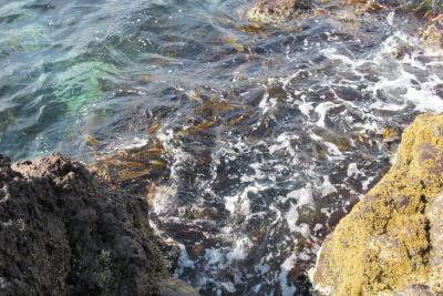溶岩でごつごつした道をグルッと回ると利尻の海に昆布がたくさん張り付いているのをまじかで見ることができました。