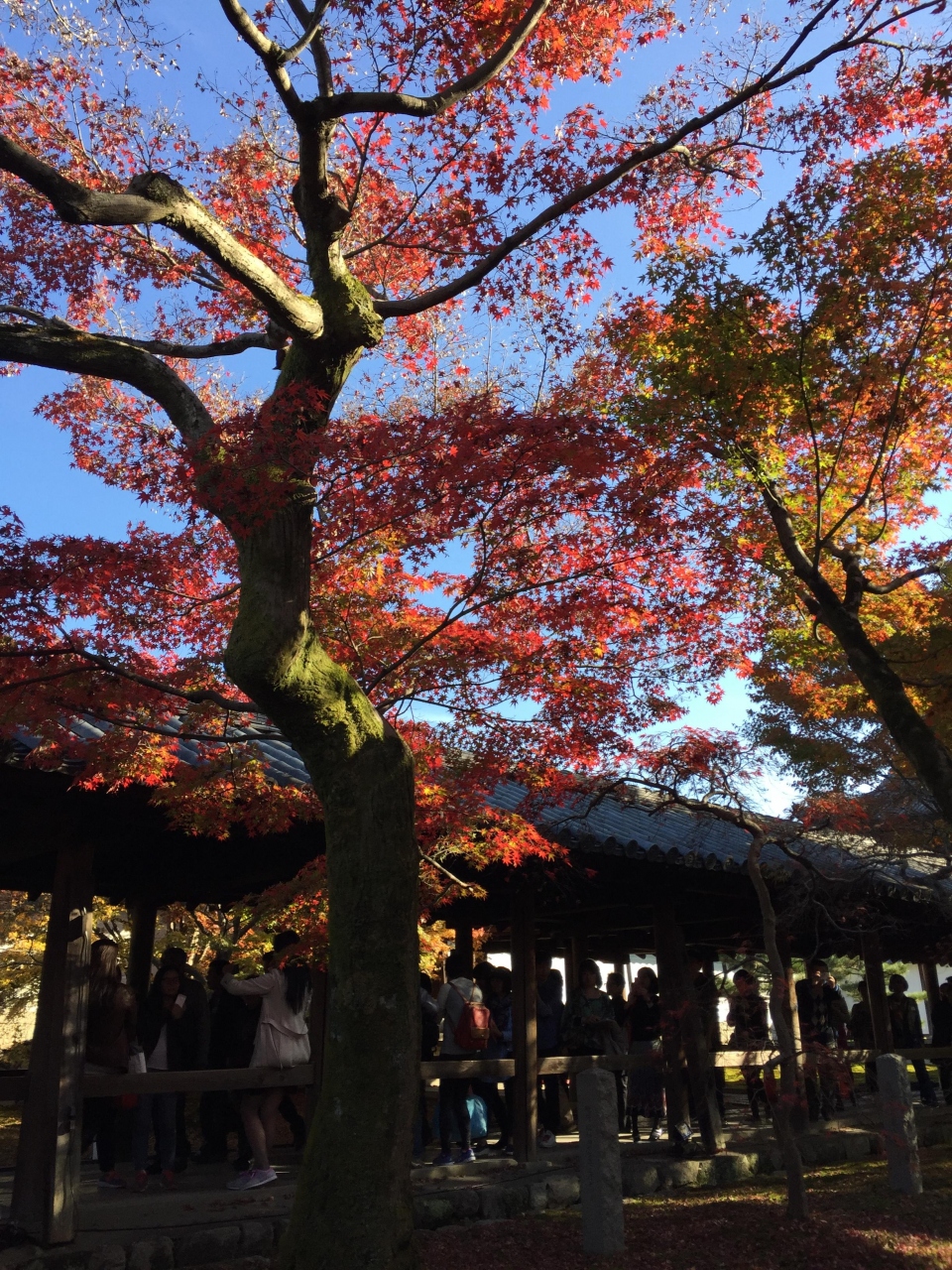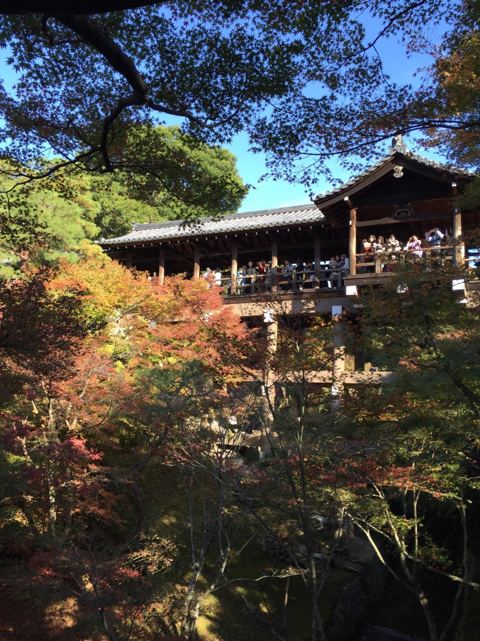 紅葉の時期の通天橋は身動きがとれないくらい混みあいます。