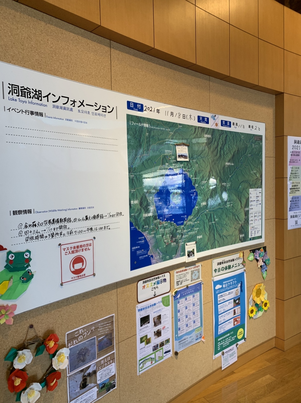 洞爺湖のほとりにログハウス調の綺麗な建物があり、のぞいてみると洞爺湖ビジターセンター火山科学館でした。館内展示は噴煙のタワーほか活発な火山活動を続ける有珠山の特徴を噴火の歴史やメカニズムを紹介していました。火山科学館は有料で大人600円でした。