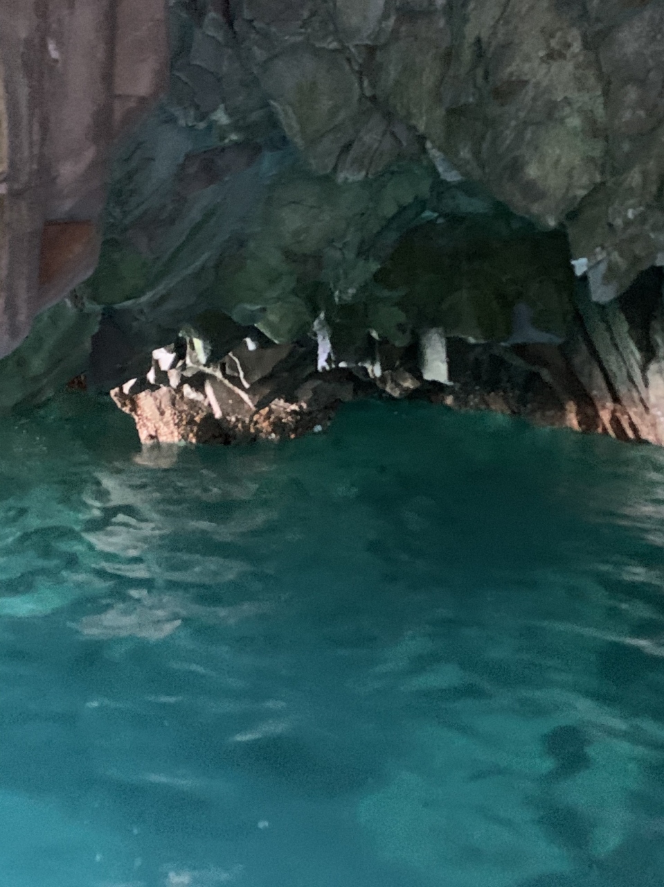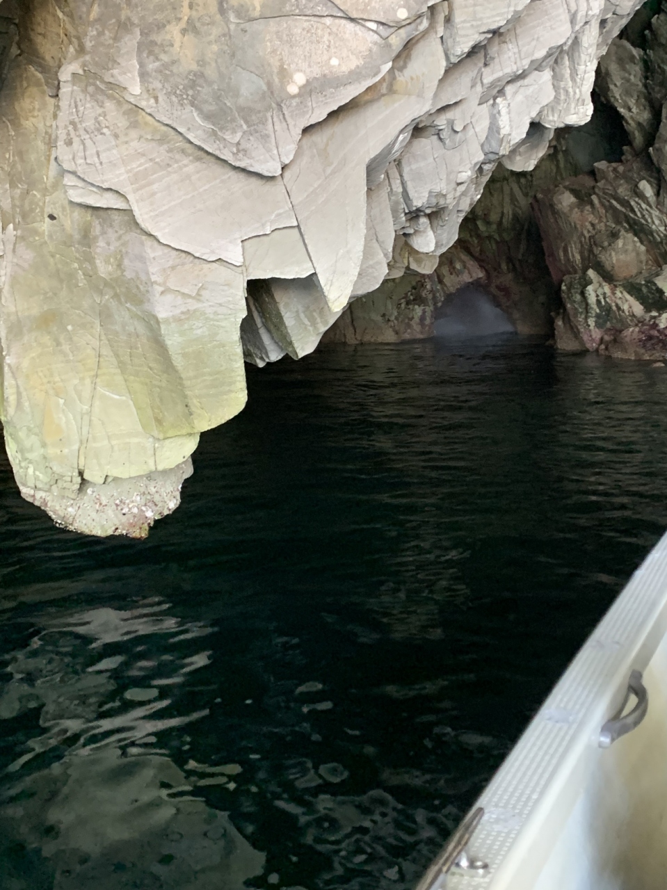 浄土ヶ浜マリンハウスで受付した後、さっぱ船に乗って行きます。ウミネコの襲来歓迎を受けて浄土ヶ浜を見ながら洞窟に入ります。名前の通り、青の洞窟です。とても海の色が綺麗で太陽のあたり具合やいろいろな条件で青の色が変化します。とてもおすすめです。