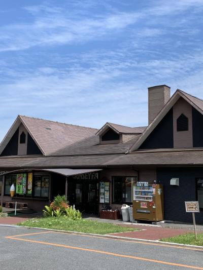ちょうど外壁の工事をしていたようで歩道橋からの入館が出来なくなっていました。場所は国道387号・442号沿いの緑豊かなところにありました。 日本初の木造立体トラス工法で作られた全面総ミラーガラス張りで何かのシンボル化と思いました。1階はショップで 2階ギャラリーには季節ごとに町民の方の作品が展示されています。 インフォメーションセンターでもあり、ASOおぐに観光協会が置かれていました。