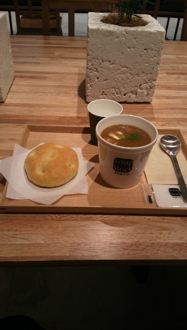福岡天神パルコ新館で九州に初出店したスープ専門店の店です。スープとパンで1000円とちょっと高いように思えますが、さすがのスープストック!!他のスープ専門店と違って味が違います。スープストックトウキョーのスープを使ったカレーもお勧めです。