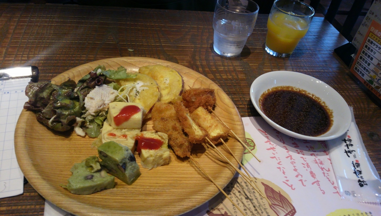 イムズの最上階にある和食ビュッフェです。他の野の葡萄同様に和食に関してはサラダや煮物などは充実しています。イムズ店の特徴では関西で有名な串カツがメニューに入っていることです。他の店舗と同様にバランスが取れていますが、ちょっとデザートの種類が少なかったのが残念だったと思います。それ以外は問題ありませんでした。