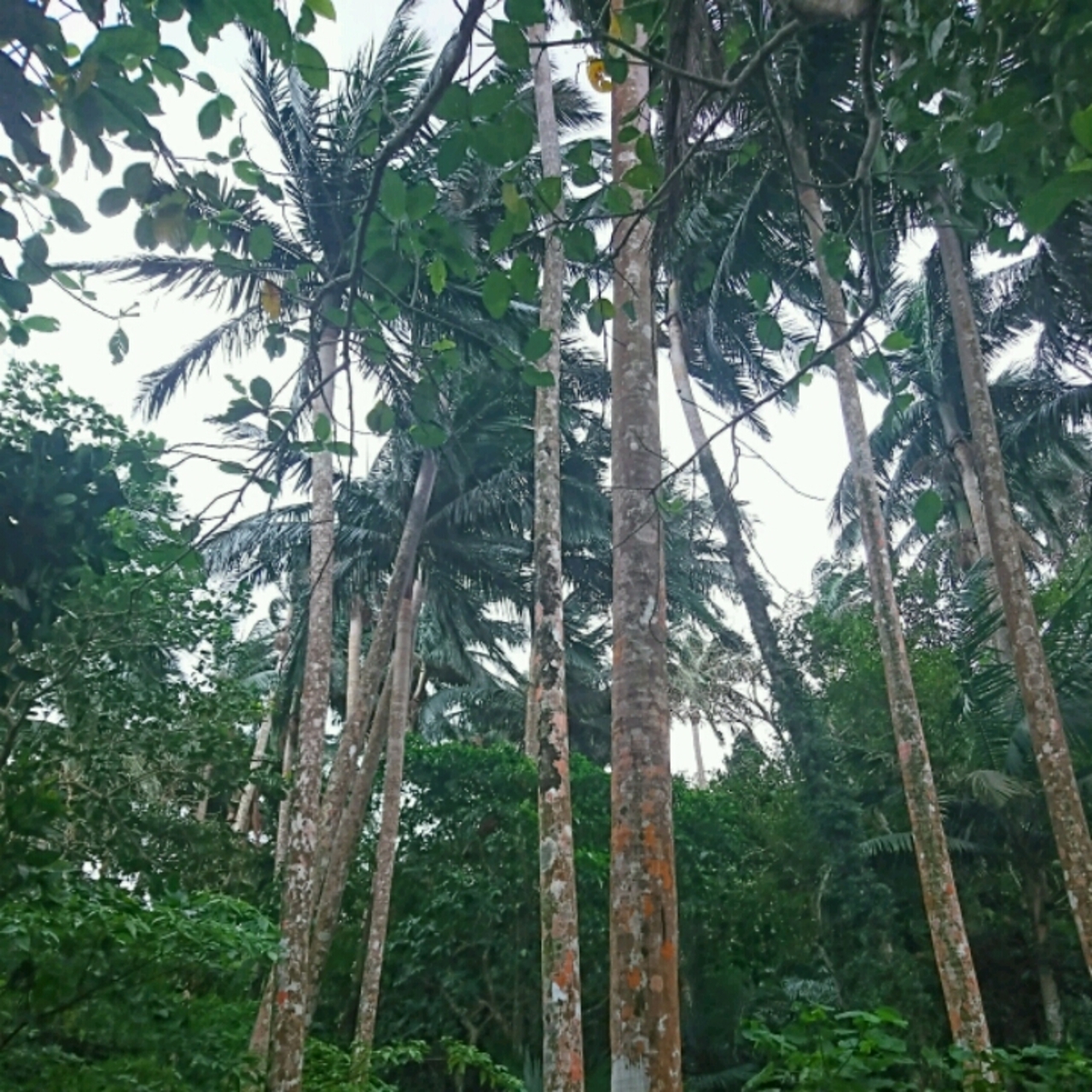 駐車場から山の中に歩いて向かいます。足場の悪いところは、それなりに整備されているので、ゆっくり歩いて10~15分くらいで行き止まりの所まで着けます。周囲にヤエヤマヤシがあり空を見上げるとヤシが格好いいです。帰りは同じ道中を戻ります。駐車場周囲に土産物屋やドリンクを売ってるお店がありました