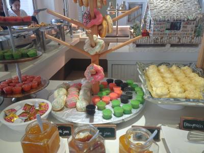 朝食はビュッフェスタイル。きれいなスイーツが映えます。生野菜食べてもおなかに影響はありませんでした。