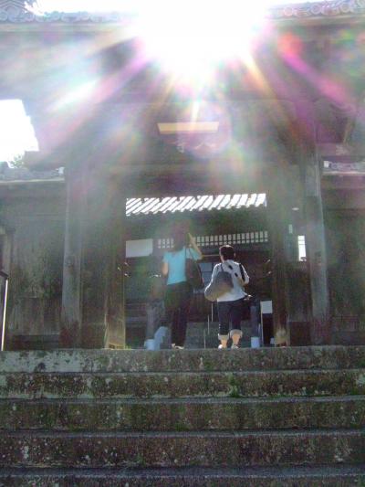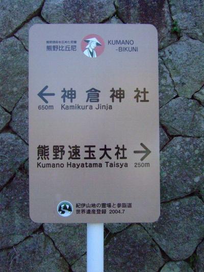 次は神倉神社へ。新宮市街の住宅地をしばらく歩く。立て札の上の部分にいる...