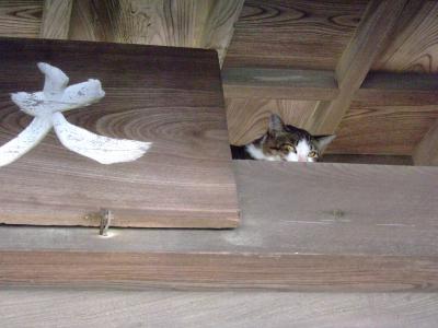 ニャー!門の上でひっそりとにらみをきかせる猫。こ、怖い…。何か宿ってな...