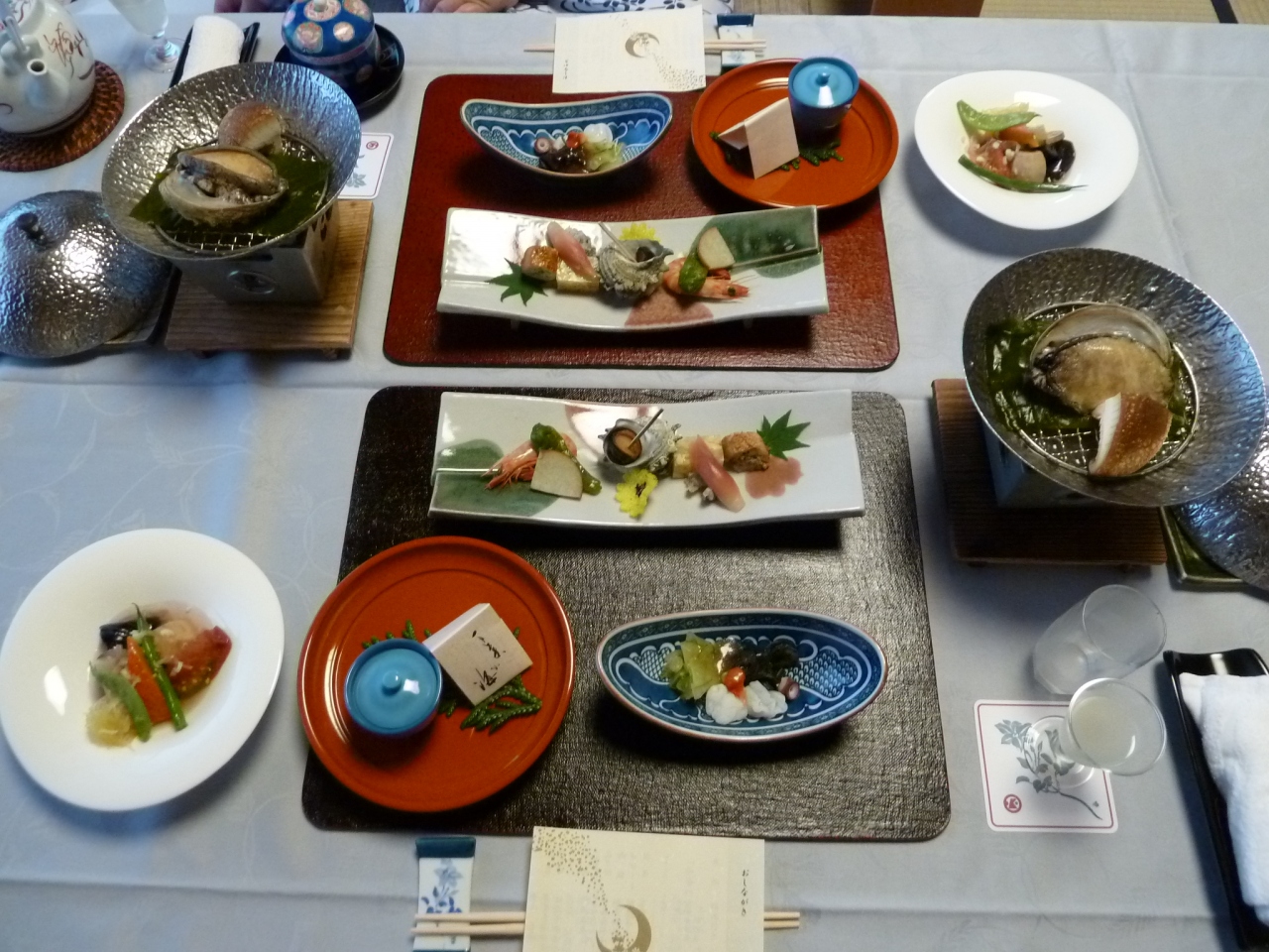 食事は地元の海産物をはじめいろいろバラエティに富み、デザートのケーキも全部いただきました。