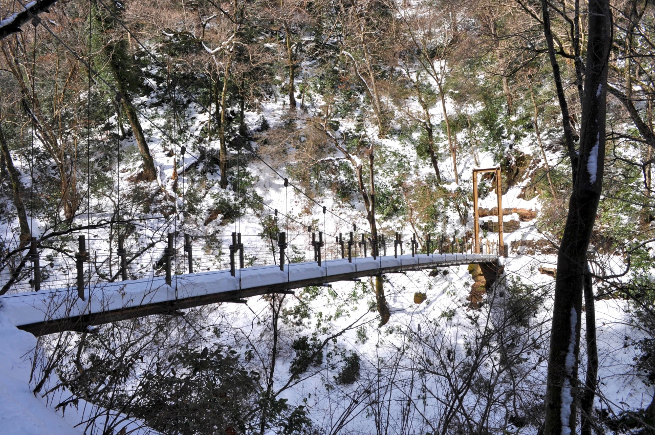 朝の散歩は近くの「鶴仙渓」へ。新緑の遊歩道は適度な森林浴の場です。- 旅行時期