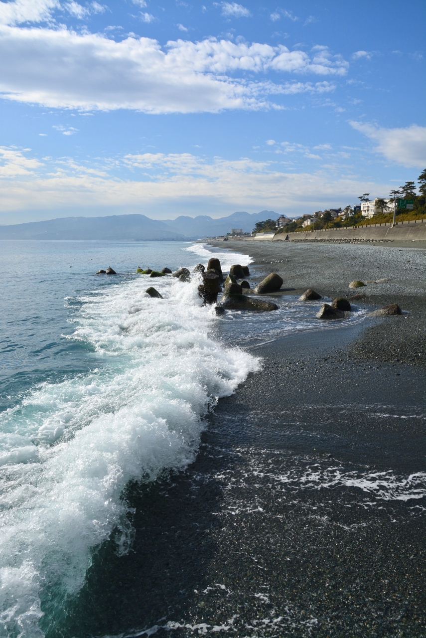 神奈川県の三浦半島の西海岸、134号線沿いにある立石公園は周辺の秋谷海岸は東京湾側と違って、自然の海岸線が多く残っています。水はきれいで夏は海水浴、冬でもサファーがでています。特に海岸から目の前に突き出した高さ12mの巨岩「立石」は絶景です。