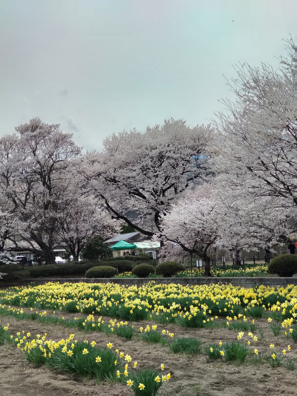- 実相寺の境内の他の桜,水仙と共にすばらしい景観