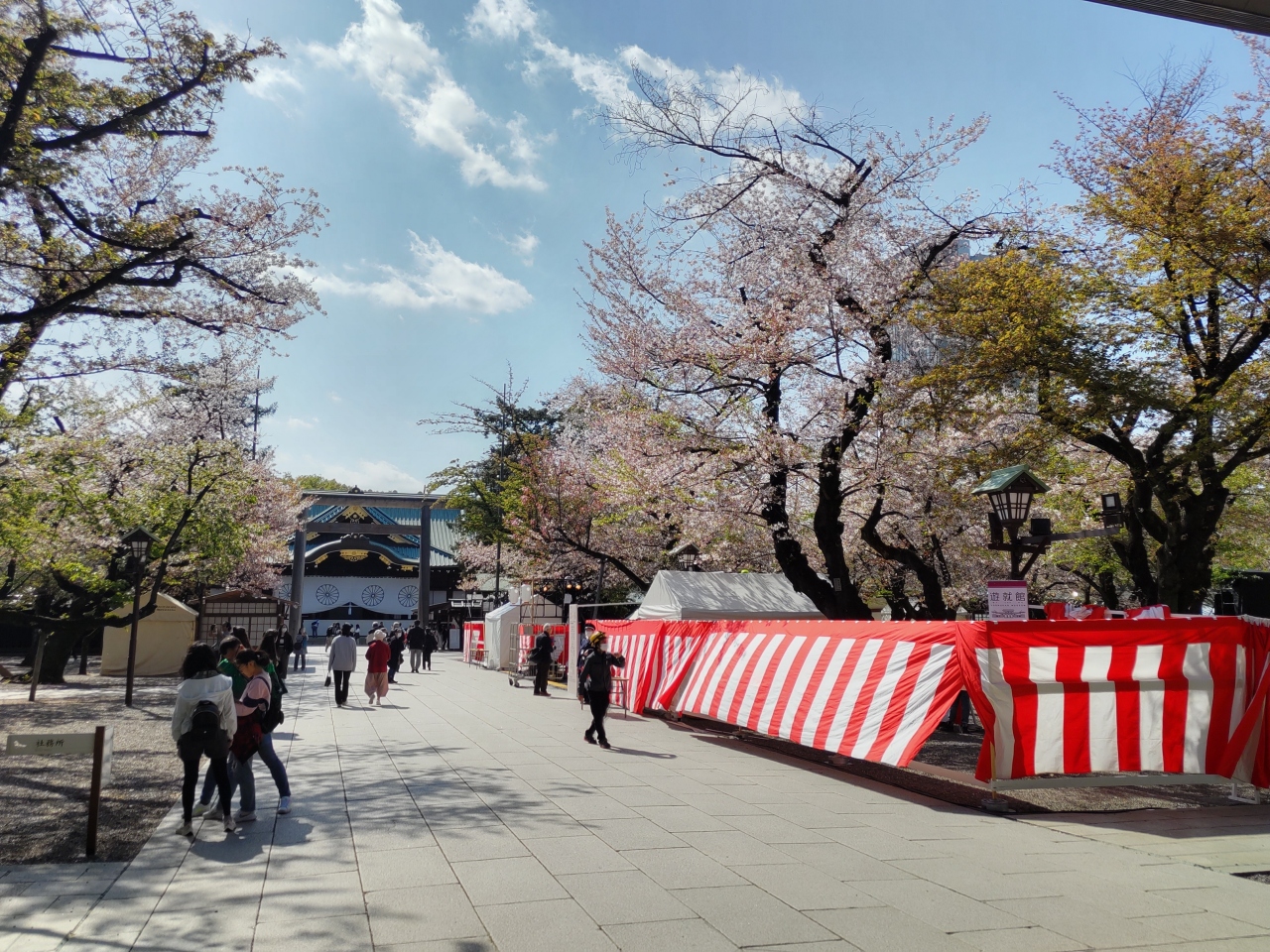 - 大鳥居から桜の標準木,祭殿と見ごたえはある