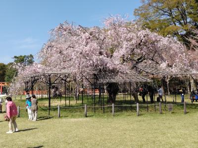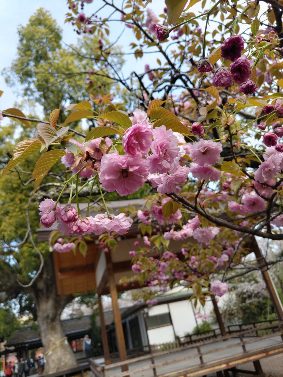 桜の名所である平野神社に行ってきました。境内には約60種400本の桜があり、平野神社原木の桜も多く、また一か月以上の長い期間様々な種の桜を愛でることができます。この日は満開の桜を見ることができました。ここの神社はさまざまな桜の花を楽しむことができる最高の場所です。