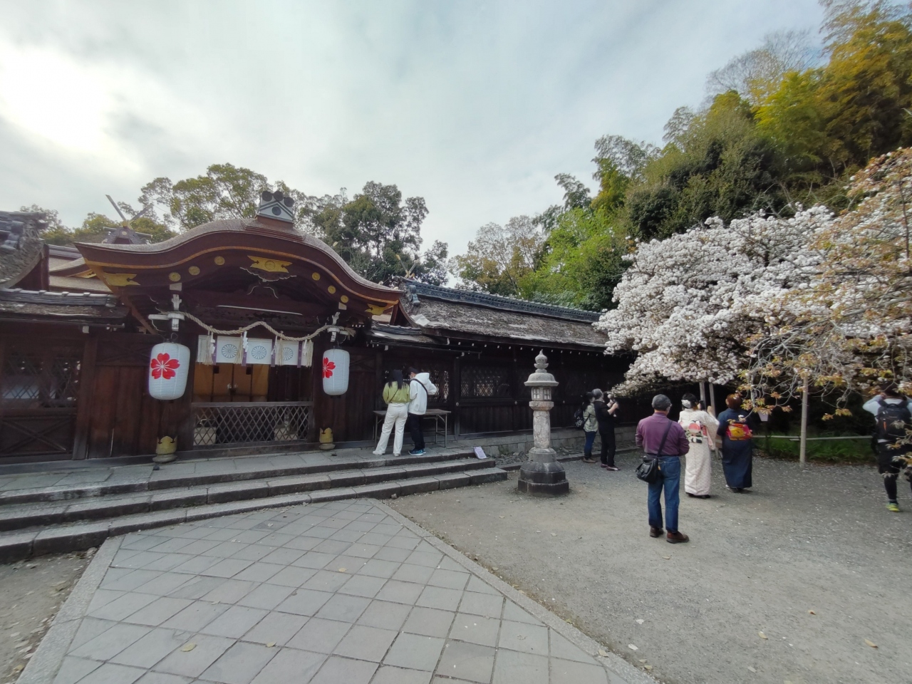 北野天満宮に行ってきました。ここは、菅原道真公を御祭神としておまつりする全国の天満宮・天神社の総本社です。このため学問の神として多くの受験生が訪れます。梅が終わり桜が咲くこの時期に訪れましたが、梅に劣らず桜も綺麗で感動しました。