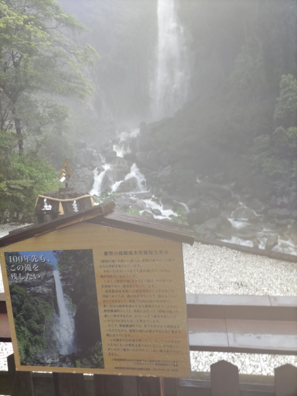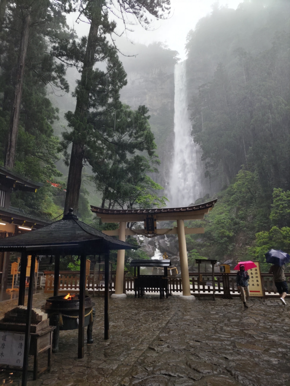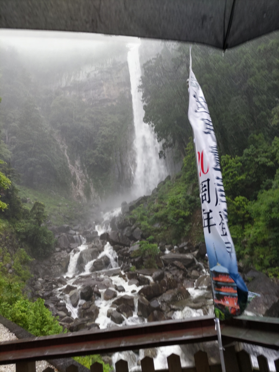 那智の滝は日本水柱は落差133m、銚子口の幅13m、滝壺の深さは10mの名瀑で、日本三名瀑の一つに数えられています。熊野那智大社の境内にあり、今年『紀伊山地の霊場と参詣道』が世界遺産に登録され20周年を迎えます。那智原始林に点在する「那智四十八滝」の一の滝として、約1300年前から滝行が行われてきた修業の現場でもあります。