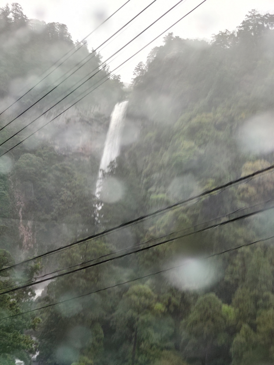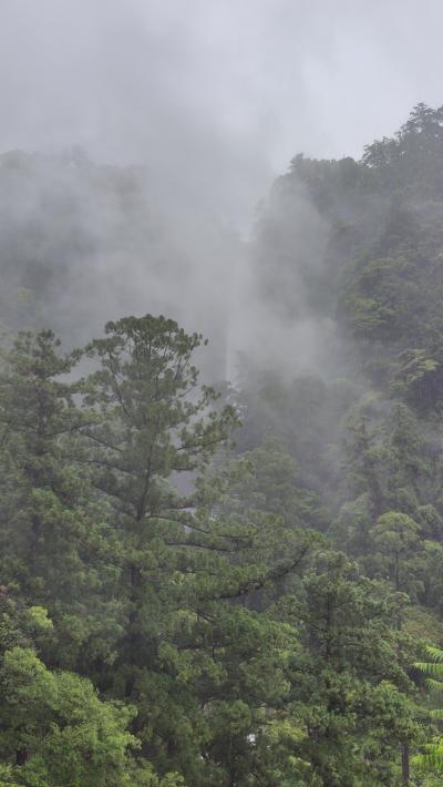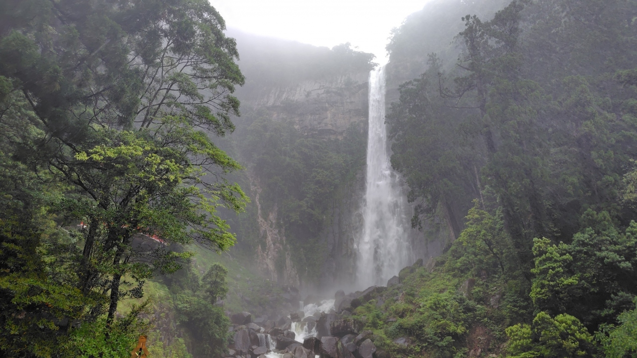 - 那智山の奥山、大雲取山から流れ出る本流にいくつもの流れが重なり合い、ついには原生林を切り裂くように落下しているのは見事