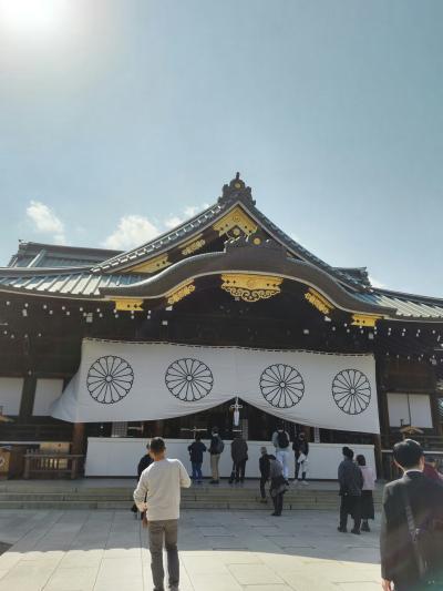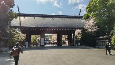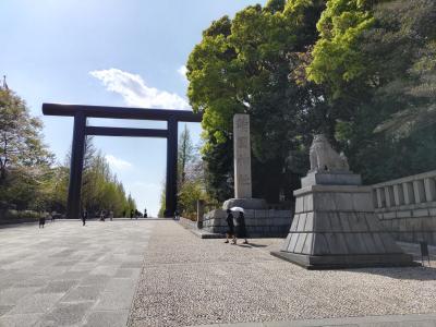 東京の桜の開花を知らせる標準木で有名な靖国神社へ行ってきました。戦没者の英霊を祀る神社ですが、今回は桜の標準木と大鳥居,本殿を見てきました、大鳥居は全国でも珍しい東の方向を向いているそうで柱の高さが約25メートル、笠木(上の横木)の長さは約34メートルもあるそうです。境内にも青銅大鳥居と中門鳥居の二つが建っていました。桜の標準木はすでに葉桜になっていました。
