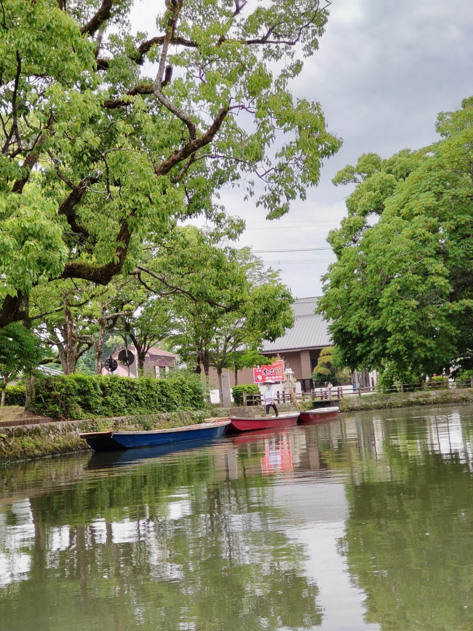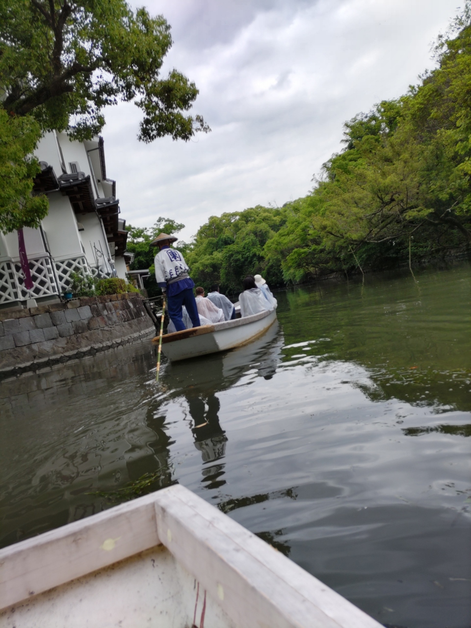 城門観光の柳川の掘割巡りに乗ってきました。乗船場が御花の目の前で御花周遊コース(所要時間約40分)を選び乗船しました。乗船中は船頭さんが方言で柳川の魅力や歴史などを面白おかしく語ってくれて更に歌まで披露してくれました。棹捌きのテクニックもすばらしいものがありました。古き良き時代から水郷柳川の良さを味わえる掘割巡りでした。