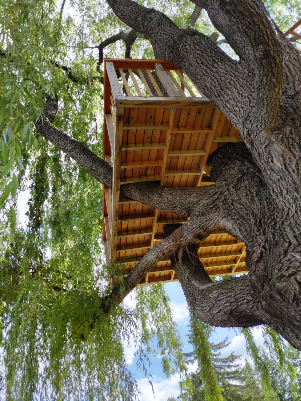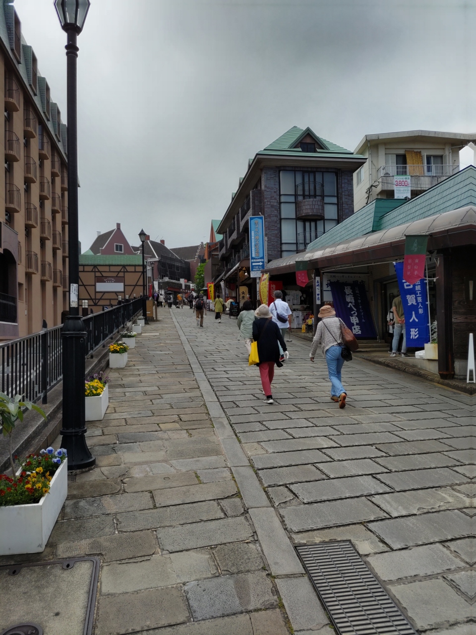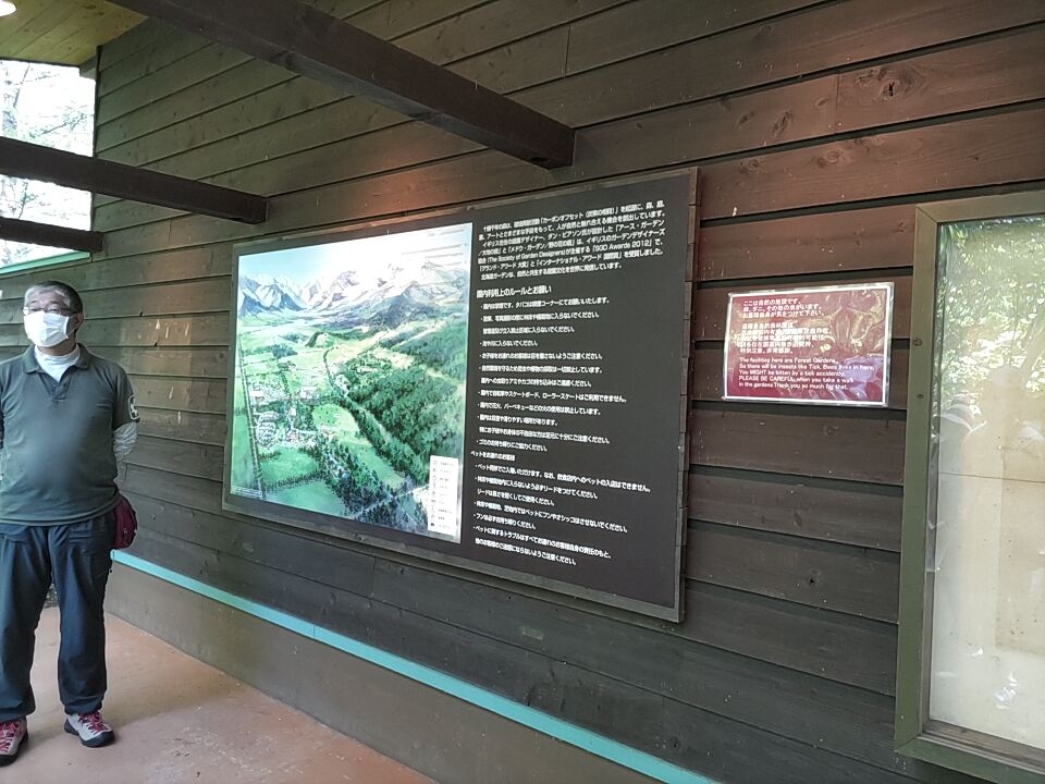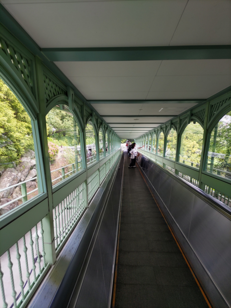 - 入口からエスカレーターで頂上までは行ける。山の斜面にあるため坂道を下る。