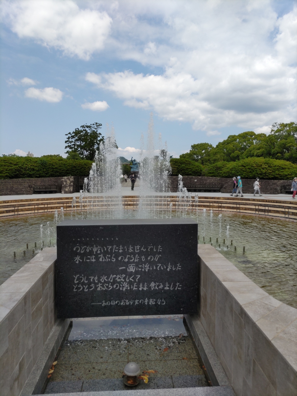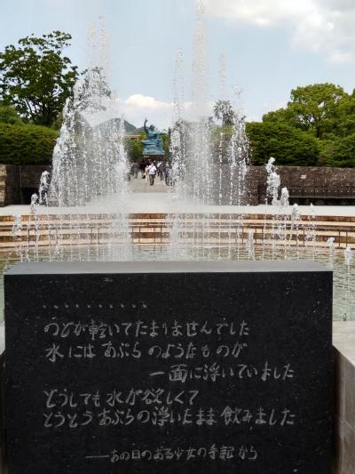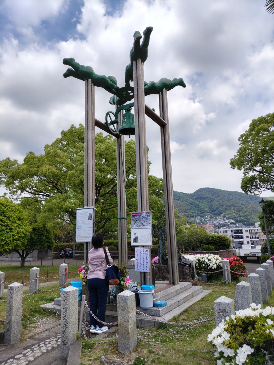 長崎の原爆投下中心地の隣にある原爆死没者の慰霊と世界恒久平和を祈念して開設された平和公園に行ってきました。「願いのゾーン」として祈念像区域は、平和祈念像を中心に、平和の泉など平和を願う場にふさわしい空間として整備されていました。平和祈念像も修復が終わり以前見たときより青色がかった像になっていました。長崎の鐘では被爆者の91歳の語り部の方に原爆投下時の話を伺いました。平和の泉から祈念像を眺めながら戦争の悲惨さと平和の願いがこみ上げてきました。