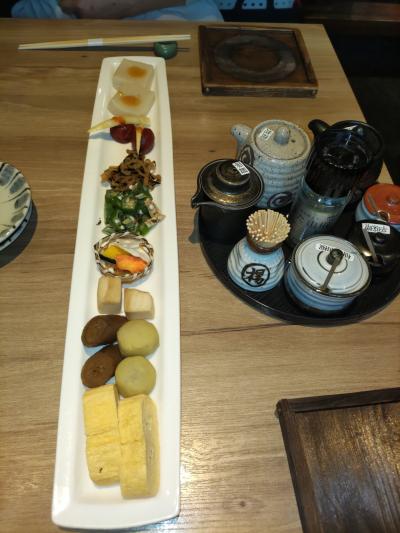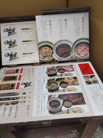 湯布院の中心部から金鱗湖に向かうと金鱗湖の直前にあるのが由布まぶし心 金鱗湖本店です。入口の門をくぐり建物の玄関を左手に座敷が、奥にテーブル席があります。平日の昼時でしたが、すんなり席に着けました。ランチメニューから豊後牛まぶしと地鶏まぶしのセットを頼みました。前菜がきた後に両まぶしのセットが来ました。食べ方は、そのまま、薬味、だし汁の3つのパターンで頂きました。ひつまぶしと同じですが、薬味は、山葵、柚子胡椒の他に漬物があり、自分の好みで食べられます。食べ方の3つともにとても美味しくいただけました。