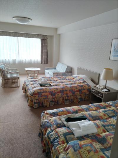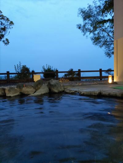 別府温泉のはずれ日出温泉にある別府湾を見下ろす高台にあるリゾートホテルです。部屋はキティーちゃんルームもありますが、私たちは高層階のツインルームに宿泊しました。山側で国道10号線と日豊本線を眺めながらの宿泊でした。ツアーで利用したので、食事は朝夕ともに宴会場にテーブルを並べて一テーブルに一家族で食べました。お風呂は地下一階にありますが高台の斜面なので露天風呂からは別府湾が一望できました。別府温泉に泊まるなら街中がいいかなと思いました。
