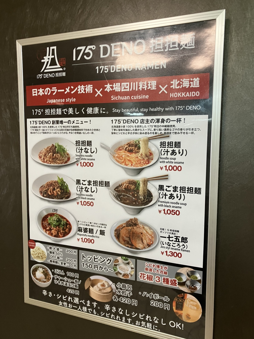 最近、はやっている札幌の担々麺ということで一回立ち寄りました。QRコードを読み取って商品・量・痺れ・辛さを入力します。まずは「標準的にはこうですよ」という例題があるので確認した方が良いと思います。普通はいずれもレベル2~3のようです。- 旅行時期
