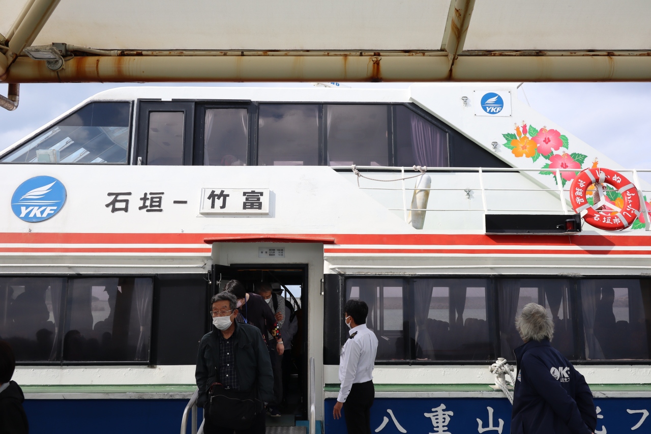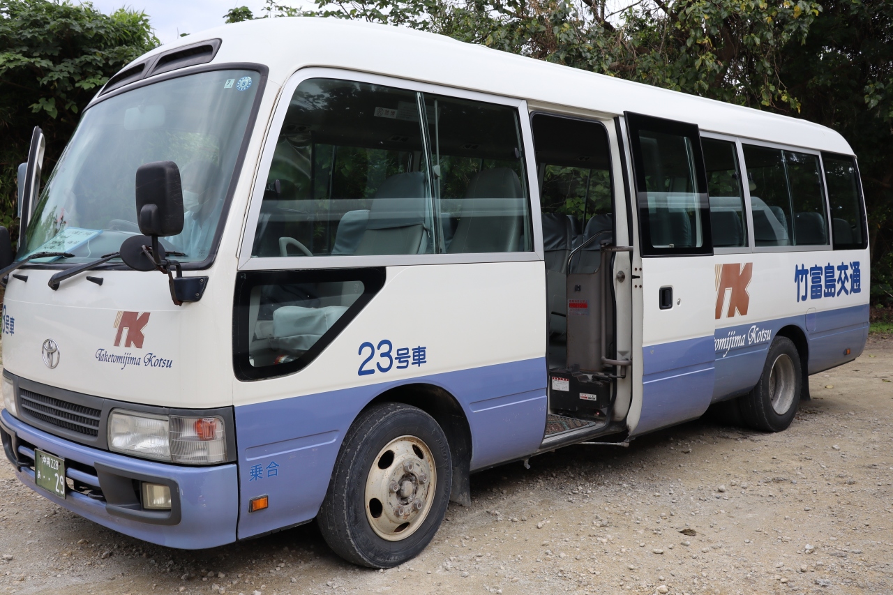 八重山観光フェリーのツアーで島めぐりコースに参加。港からマイクロバスに乗って星砂浜のカイジ浜に寄った後、赤瓦屋根の伝統的集落を散歩しました。降りたバス停「タカミネ」で帰りの船の時間を決めて、運転手さんから告げられた集合時刻に集合します。