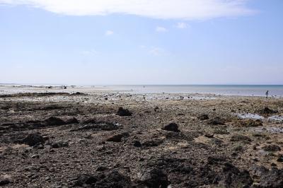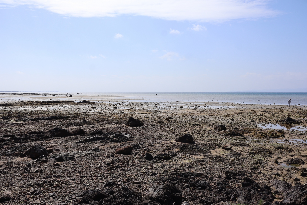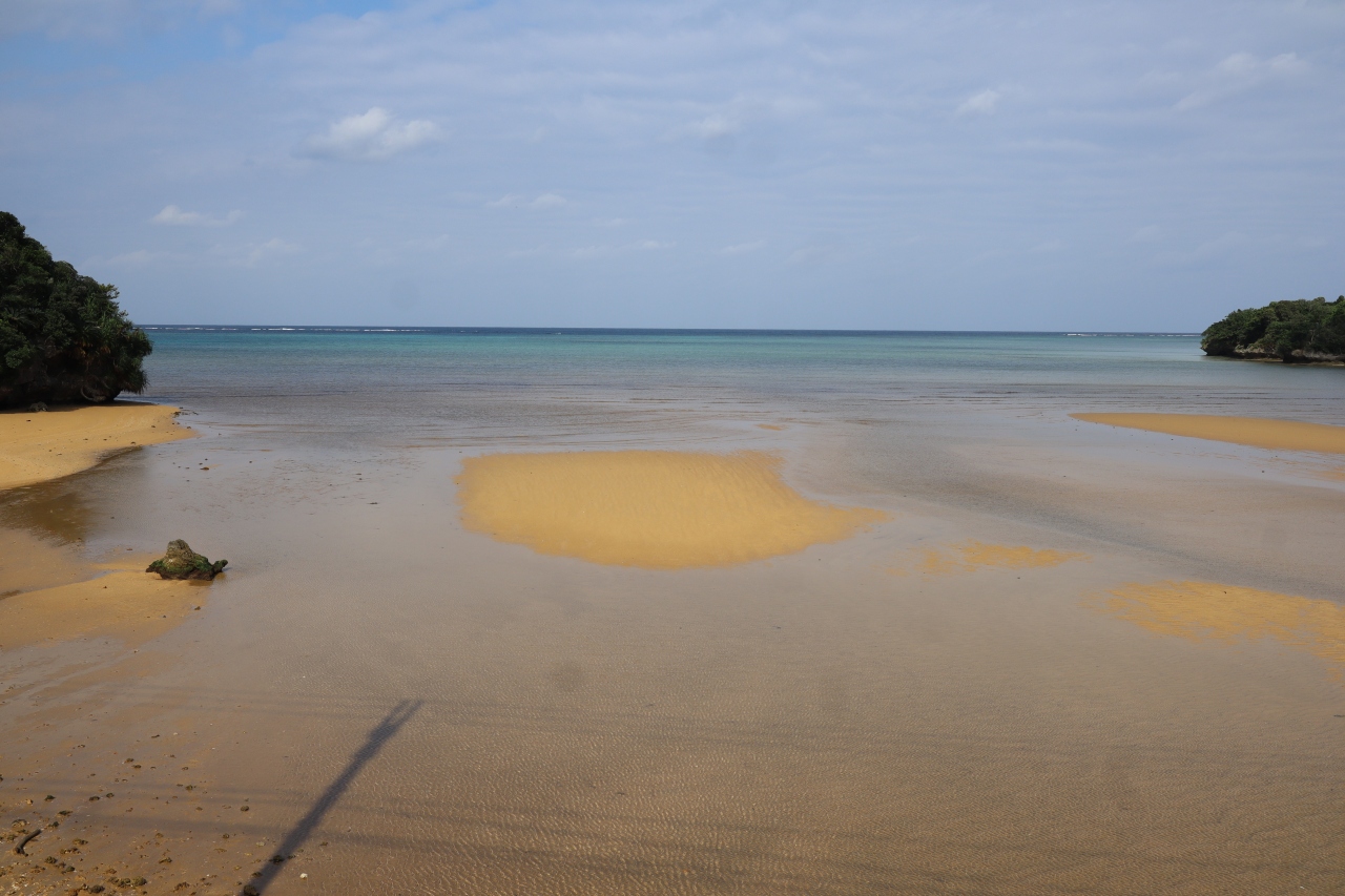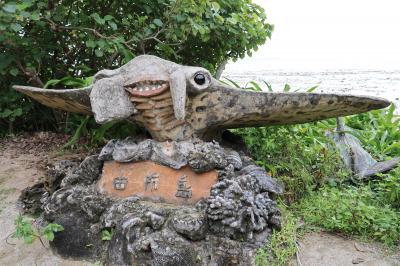 八重山観光フェリーのツアー「てぃーだコース」で、西表島・由布島・竹富島の3島めぐり。その最後を締めくくる竹富島。港でマイクロバスに乗り込み最初の下車がカイジ浜。別名「星砂浜」と言われ、海岸の岩の凹みに指を押し付けて砂を採ると星の砂が混じっていてそれを採取します。私は下手でうまく採取できなかったので、後ほど訪れた赤瓦屋根の集落にある商店で売っていた星砂瓶を買いました。